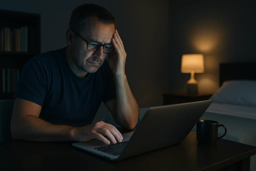 • Difficulty falling asleep or staying asleep, often leading to insufficient rest
